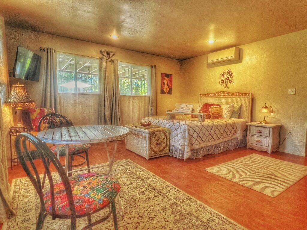 which is why we incorporate a French theme. In the garden we run a family-owned and operated vacation/business short-term rental company offering four distinct units–or the whole property. Please check them out below!