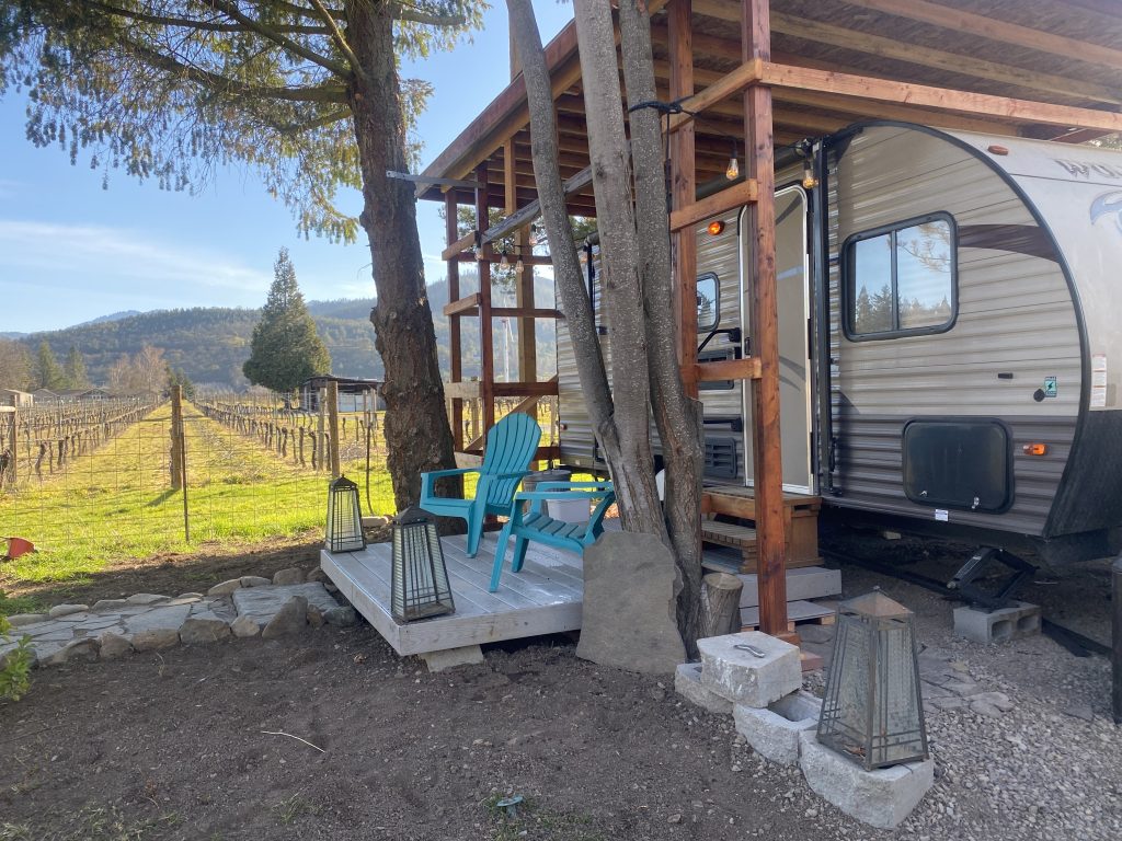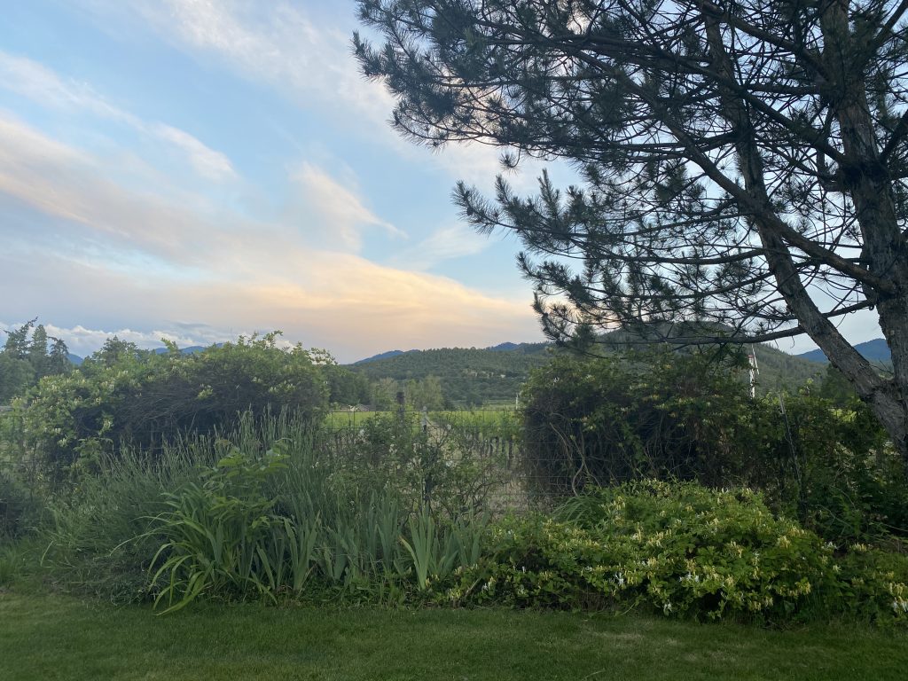 Le Jardin Familial is a serene, peaceful landscaped acre nestled in the Rogue Valley of Oregon, overlooking a vineyard and the foothills of the Cascade-Siskyou Mountain Range. The picturesque setting is reminiscent of Provence,